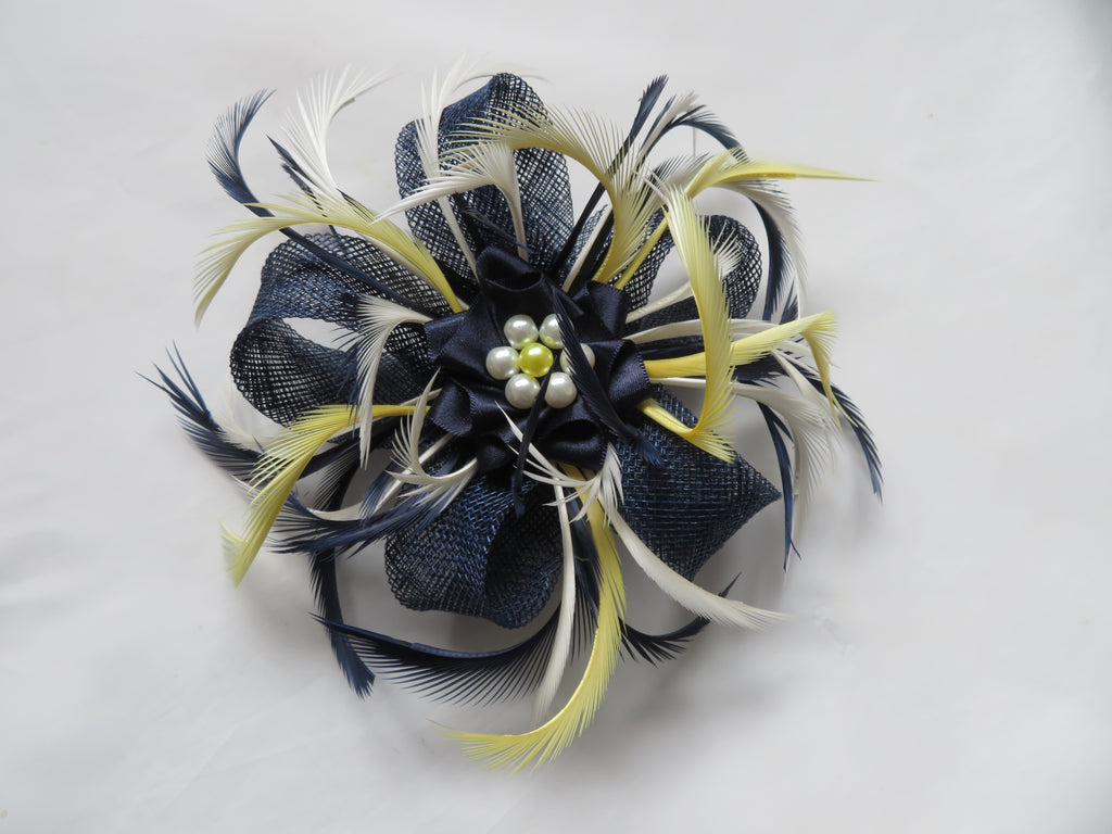 Navy Ivory and Primrose Yellow Mini Lily Fascinator