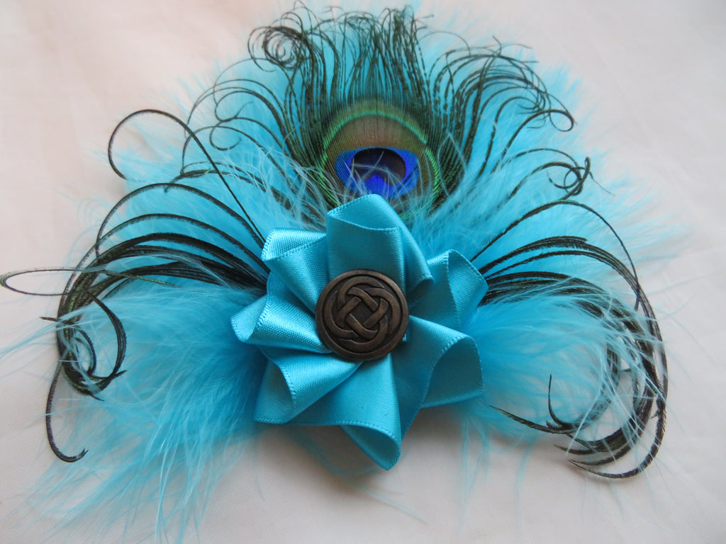 Turquoise Peacock Celtic Hair Clip/ Brooch