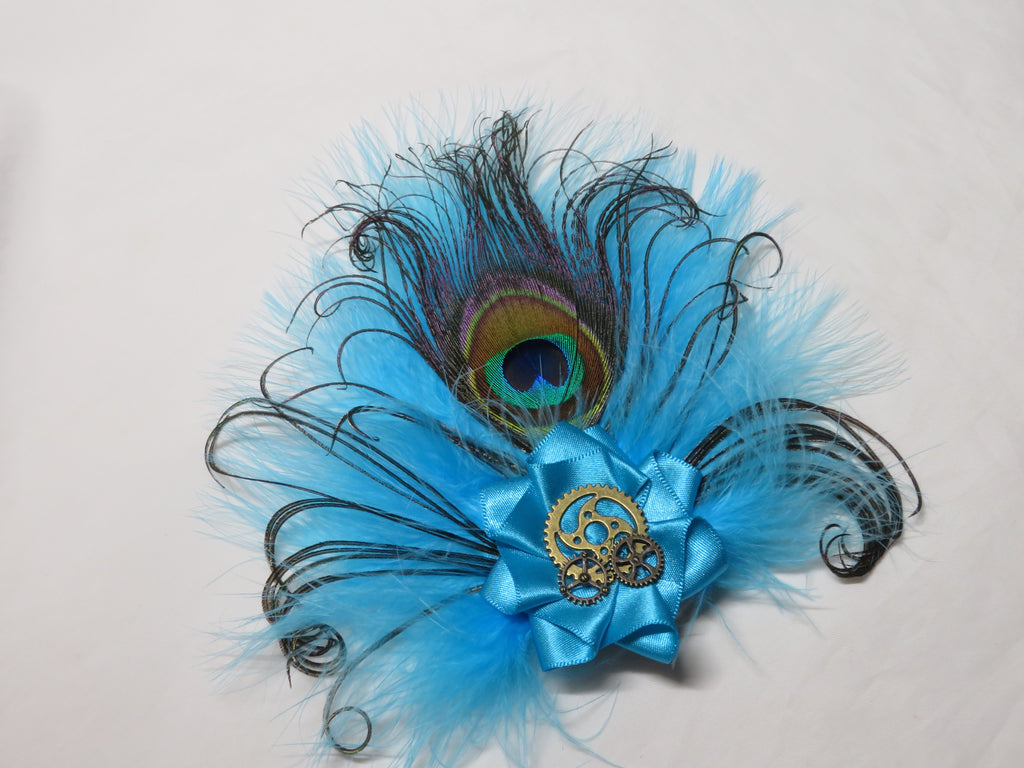 This Turquoise Blue “Little Gem” Feather Brooch Clip is made to order.