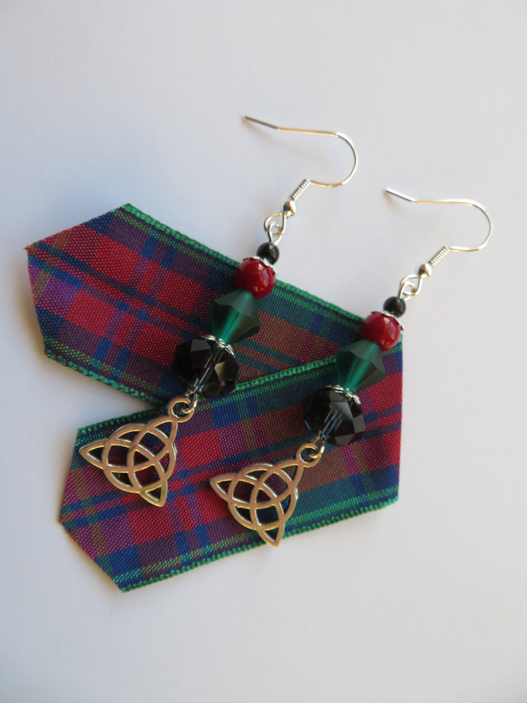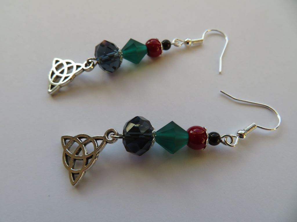 Burgundy & Navy Triquetra Celtic Earrings