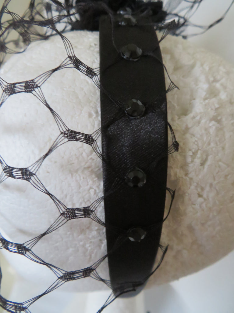 Black Satin Veiled Headband with Crystals – Bespoke Vintage-Inspired Fascinator