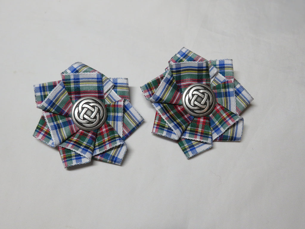 Dress Stewart Tartan Ribbon Ruffle Shoe Clips – Small Pair (Celtic Button Detail)