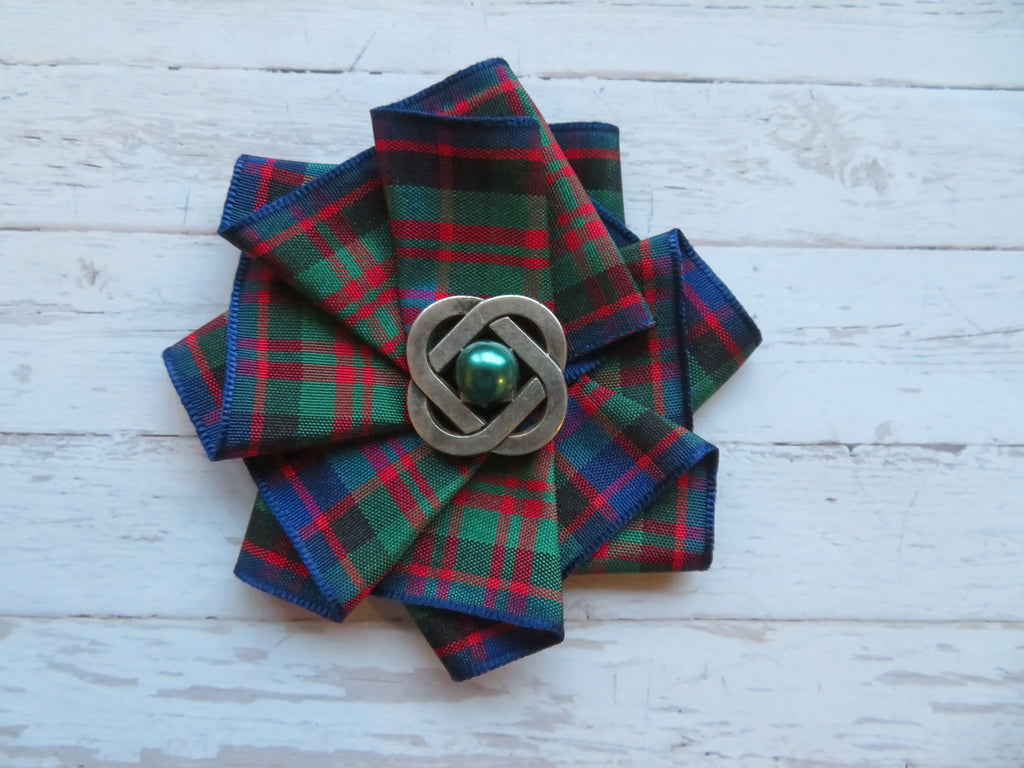 Add a charming touch of Scottish heritage with this handmade Tartan Ribbon Ruffle Rosette. Carefully crafted with a sewn ruffle of your chosen tartan ribbon, it is finished with a choice of silver or brass Celtic buttons, white pearls, diamante studs, or themed charms such as steampunk cogs, spiders, or pentagrams.