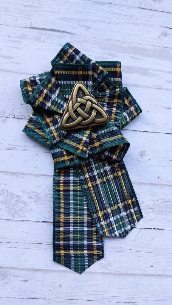 Tartan Ruffle Rosette Triquetra Mini Brooch Pin